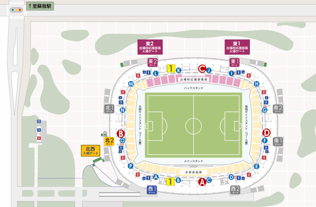 - バックスタンド「出場校応援部員席」に、一般の方はご着席いただけません。また、「出場校応援部員席」のブロック数は変更となる場合もございますので、あらかじめご了承ください。